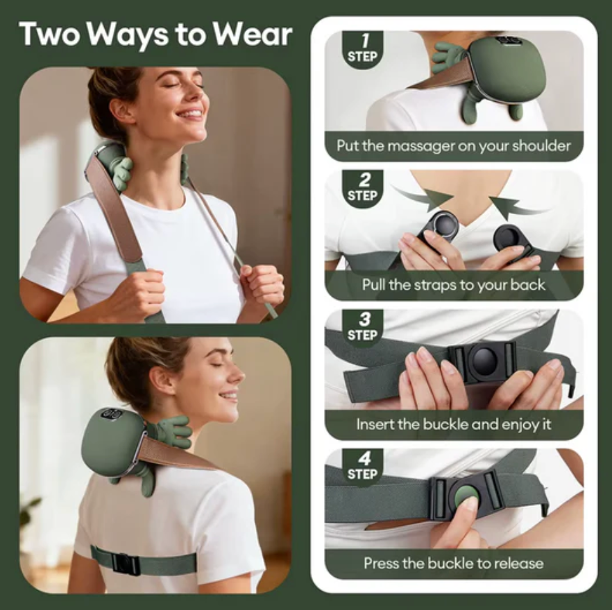 Its lightweight, ergonomic, and portable design allows for comfortable hands-free use, making it ideal for daily relaxation, stress release, and evening wind-down routines. Rechargeable and easy to use, it fits seamlessly into modern self-care habits without complicated setup.